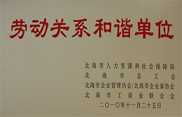 熱烈祝賀我司被評(píng)為2010年度“北海市勞動(dòng)關(guān)系和諧單位”