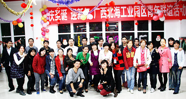 2010年12月23日晚,由產(chǎn)業(yè)園公司團(tuán)支部與工業(yè)園工會、工業(yè)園團(tuán)工會聯(lián)合舉辦的“慶圣誕,迎新年,廣西北海工業(yè)園區(qū)青年聯(lián)誼活動”在產(chǎn)業(yè)園員工活動室舉行。