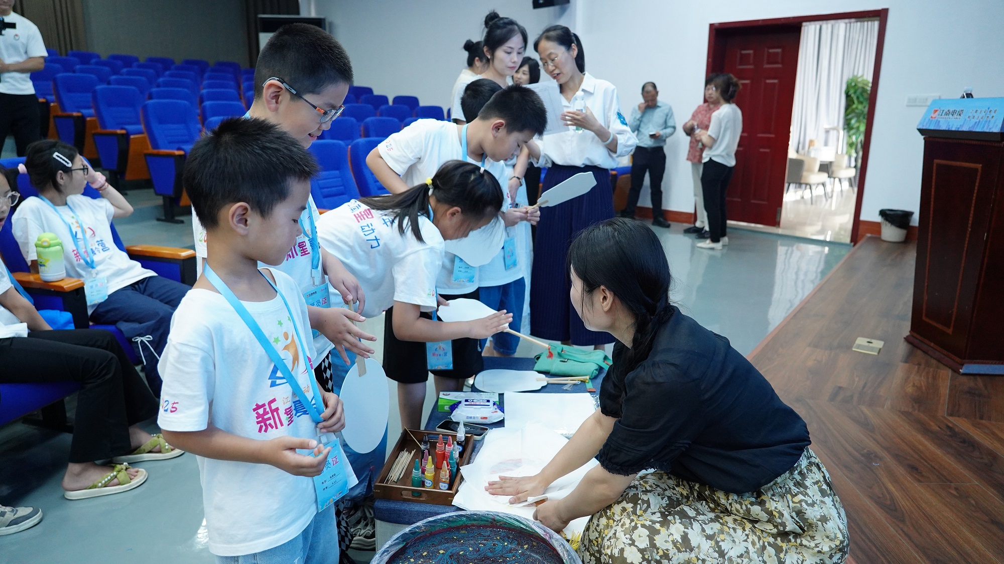 在老師的指導(dǎo)下,孩子們認(rèn)真學(xué)習(xí)漆扇制作技巧,從顏色選擇到滴入漆料再到素扇入水附著花紋,一把把絢麗、雅致的漆扇躍然而出。大家在實(shí)踐中感受非遺技藝的精妙,更在潛移默化中培養(yǎng)了對(duì)傳統(tǒng)文化的熱愛。