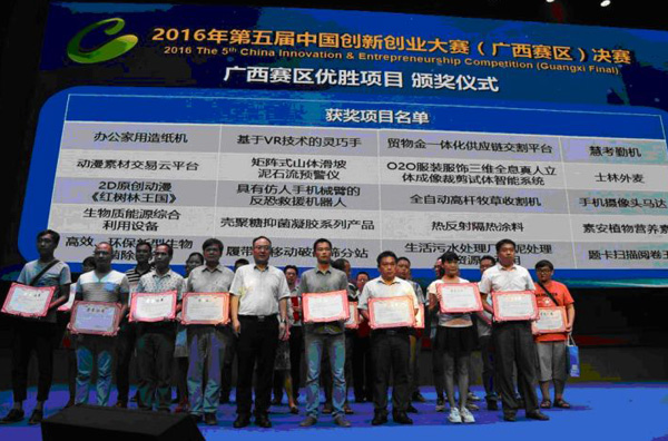2016年8月26日,2016年第五屆中國(guó)創(chuàng)新創(chuàng)業(yè)大賽(廣西賽區(qū))決賽在南寧舉行,中國(guó)創(chuàng)新創(chuàng)業(yè)大賽廣西賽區(qū)比賽圓滿落幕,北部灣孵化器企業(yè)廣西北海唐興農(nóng)機(jī)科技有限公司、北海市科遙奇電子科技有限公司在廣西區(qū)復(fù)賽表現(xiàn)優(yōu)異,獲得2016年第五屆中國(guó)創(chuàng)新創(chuàng)業(yè)大賽廣西賽區(qū)優(yōu)勝項(xiàng)目獎(jiǎng)。