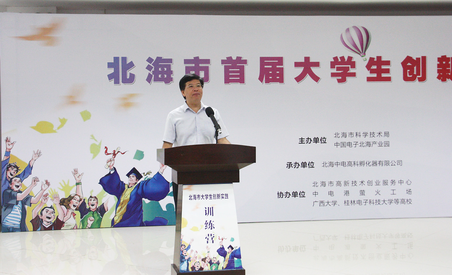 2017年8月15日,北海市首屆大學生創(chuàng)新實踐訓練營在中國電子北海產業(yè)園舉行開營儀式,北海市常務副市長陳維出席了開幕式,并宣布訓練營開營。