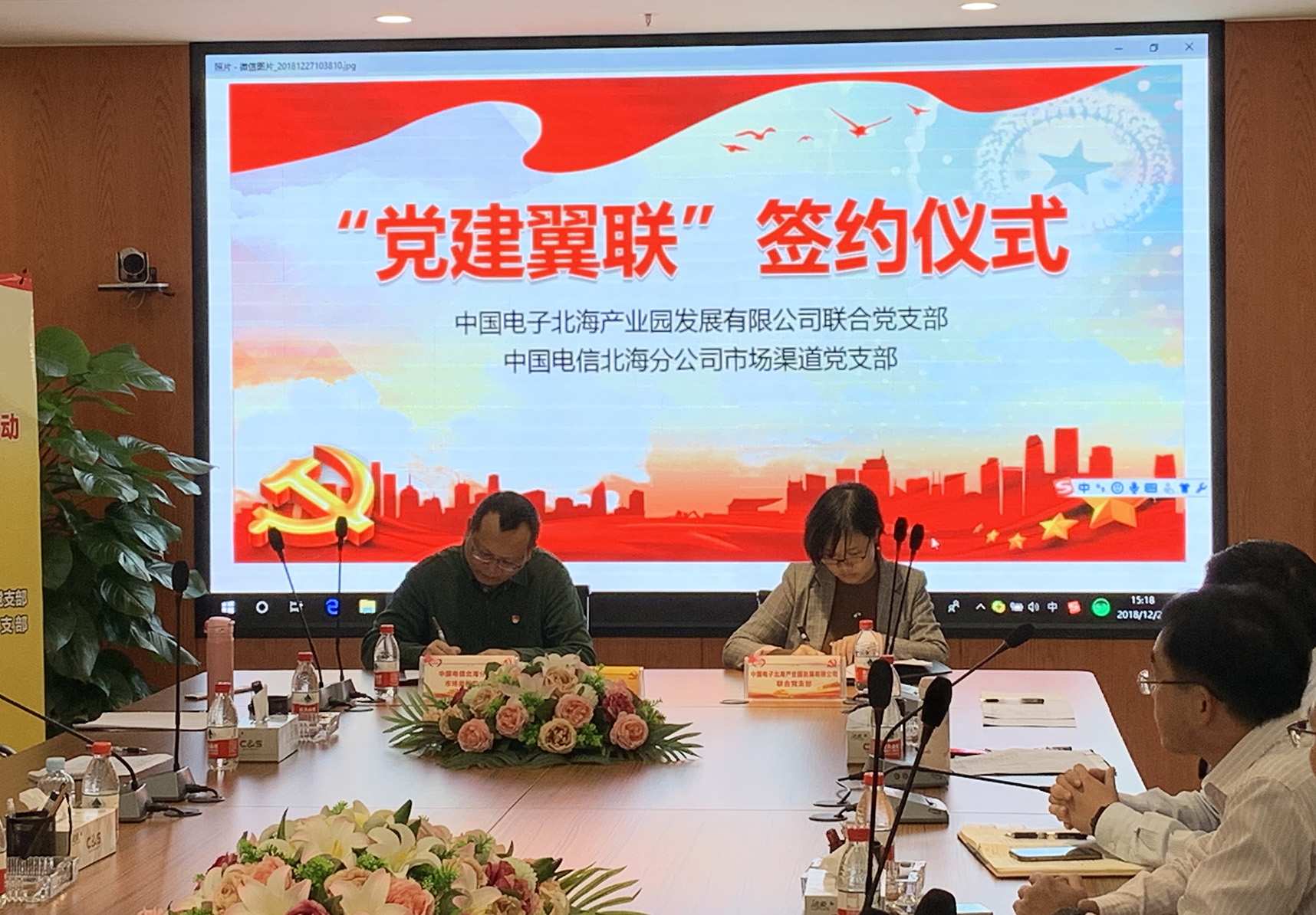為深入學(xué)習(xí)貫徹黨的十九大精神,堅(jiān)持以習(xí)近平新時(shí)代中國(guó)特色社會(huì)主義思想為指導(dǎo),落實(shí)新時(shí)代黨的建設(shè)總要求,充分發(fā)揮基層黨支部的主體作用,激發(fā)黨員的活力。2018年12月27日,中國(guó)電子北海產(chǎn)業(yè)園發(fā)展有限公司聯(lián)合支部委員會(huì)、中國(guó)電信股份有限公司北海分公司市場(chǎng)渠道支部委員會(huì)簽署了“黨建翼聯(lián)”合作書,旨為整合雙方在黨建、科技、電子信息產(chǎn)業(yè)的資源優(yōu)勢(shì),以共建共享為基礎(chǔ),以合作共贏為目的,積極拓展黨組織功能,發(fā)揮黨員先鋒模范作為,積極推進(jìn)事業(yè)發(fā)展,助力北海電子信息產(chǎn)業(yè)升級(jí)轉(zhuǎn)型。