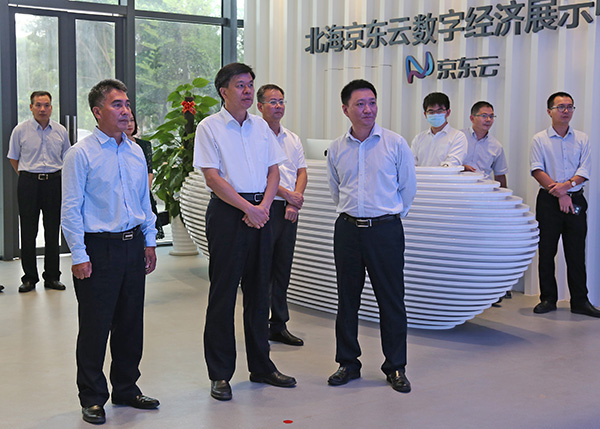 2020年6月11日下午,北海市委書記王乃學(xué)同欽州市委書記許永錁?biāo)暑I(lǐng)的欽州市黨政代表團(tuán)到中國電子北部灣信息港調(diào)研,參觀了北海京東云數(shù)字經(jīng)濟(jì)展示中心、京東網(wǎng)紅直播基地,聽取企業(yè)負(fù)責(zé)人介紹生產(chǎn)經(jīng)營等方面的情況。