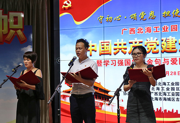 2020年6月28日下午,廣西北海工業(yè)園區(qū)迎慶中國共產(chǎn)黨建黨99周年暨學(xué)習(xí)強(qiáng)國每日金句與愛國詩詞朗誦讀比賽在工業(yè)園區(qū)舉行。中國電子北海產(chǎn)業(yè)園聯(lián)合黨支部組織支部黨員及代表參賽,經(jīng)過精彩角逐,榮獲比賽二等獎。